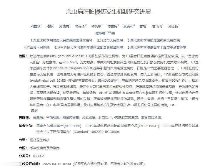 参考资料:[1]刘鑫华,毛静,刘康霄,等.恙虫病肝脏损伤发生机制研究进展[J].医学动物防制聚美策略,2025
