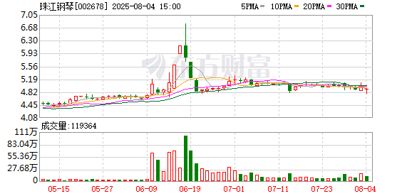 珠江钢琴(SZ 002678,收盘价:4.91元)8月4日晚间发布公告称,公司第四届第三十七次董事会会议于2025年8月4日在公司文化中心五楼会议室以通讯会议方式召开。会议审议了《关于提请召开公司2025年第一次临时股东大会的议案》等文件。